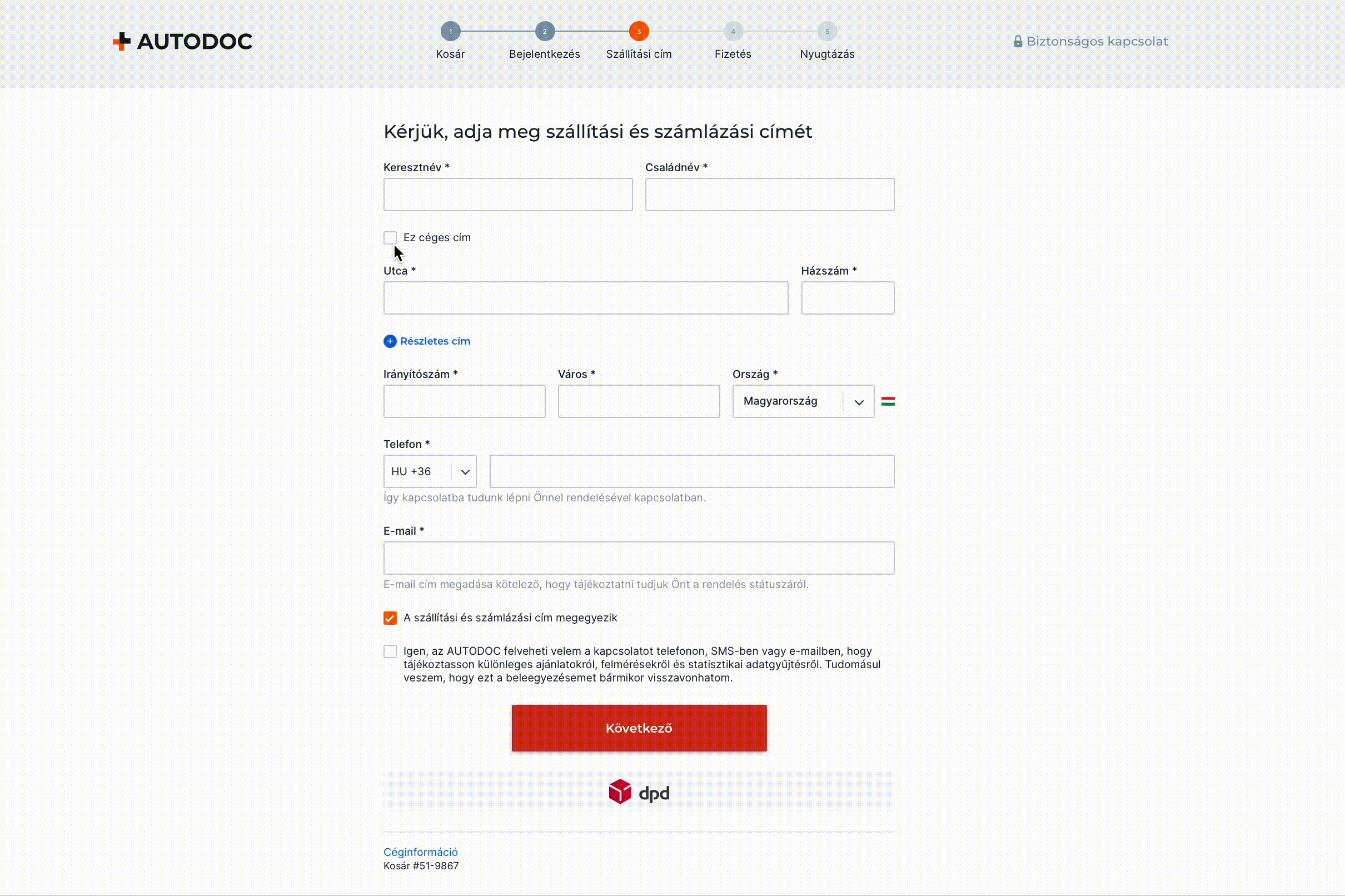 Vásárlás előtt mindig ellenőrizd a címedet. A szállítási cím a rendelési folyamat második szakaszában módosítható. A többi címet, beleértve a számlázási és szállítási címet is, a fiókodban a Címjegyzékem menüpontban ellenőrizheted.
